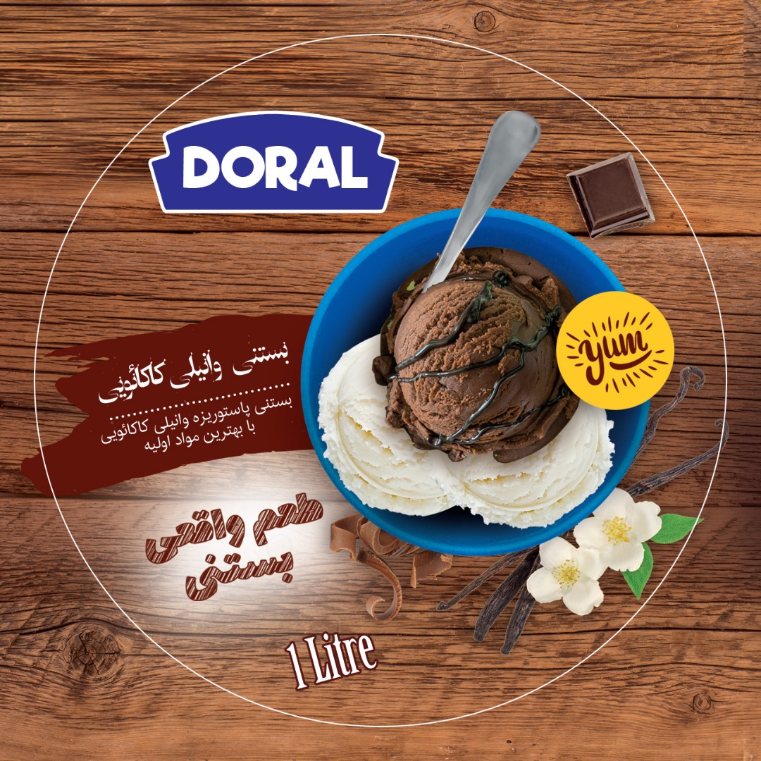 vanilla & cocoa ice cream one of the best ideas of Doral ice cream is to combine two popular flavors of vanilla and cocoa ice cream in one container , each with a diffrent flavor and color , creating a unique blend